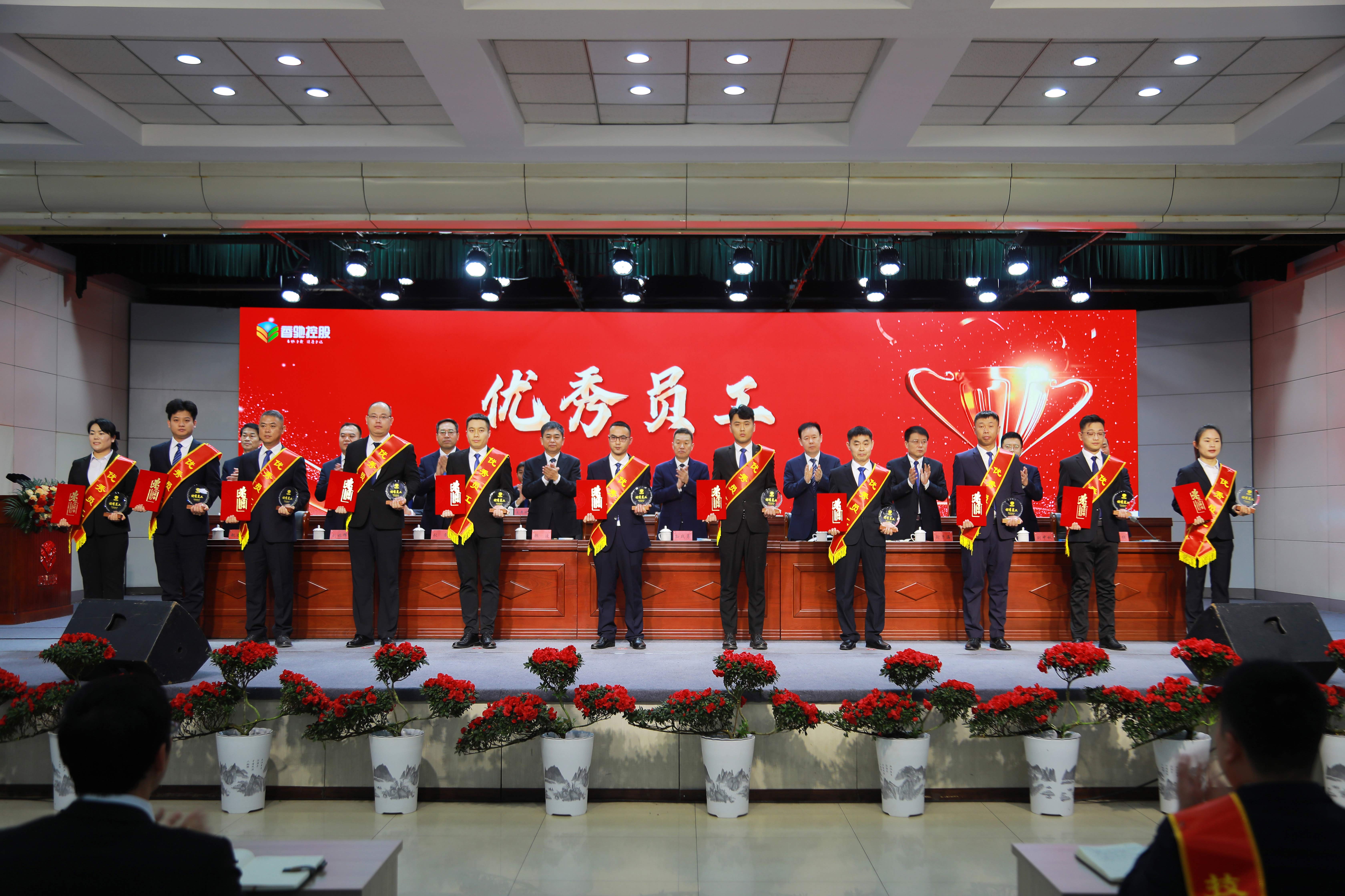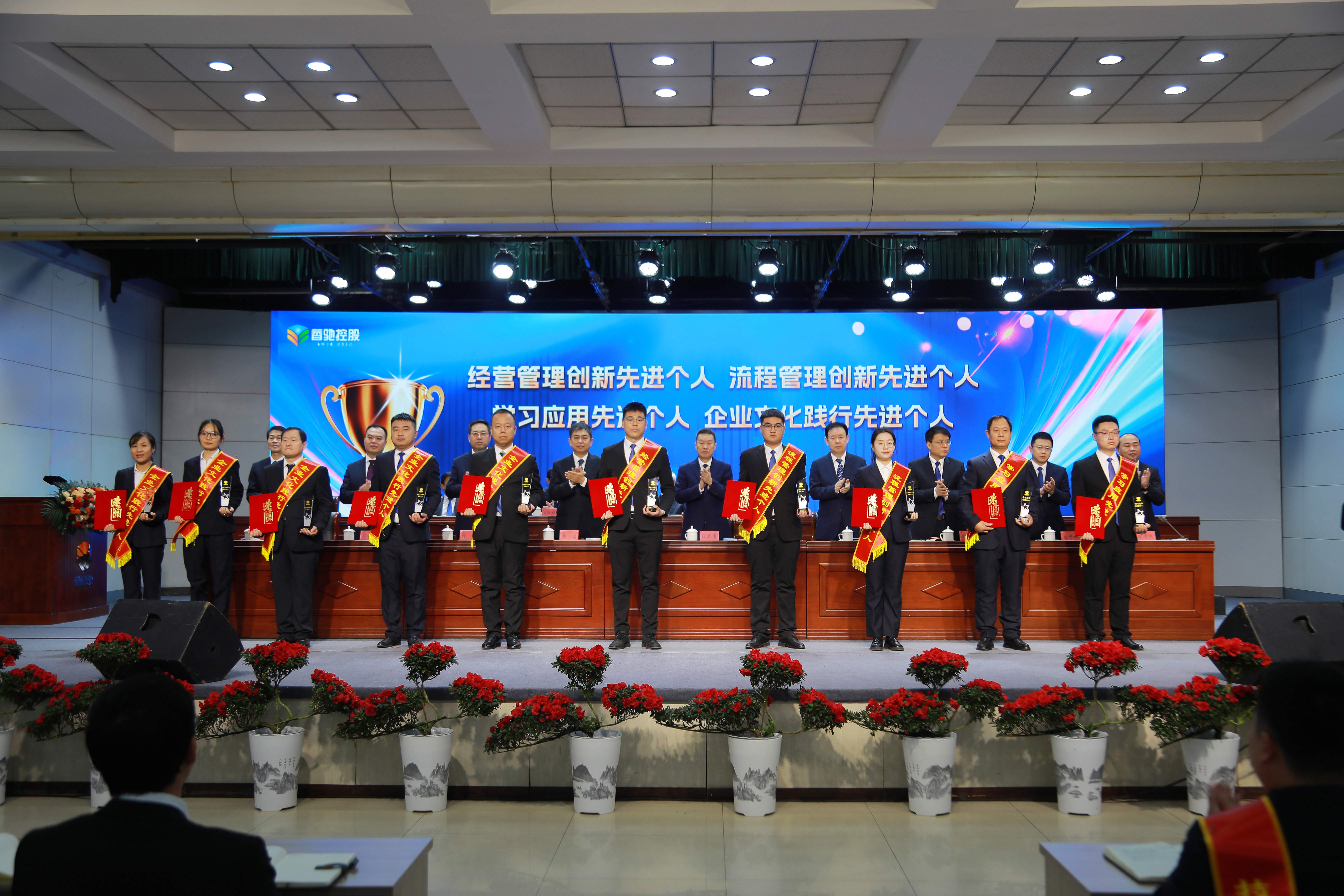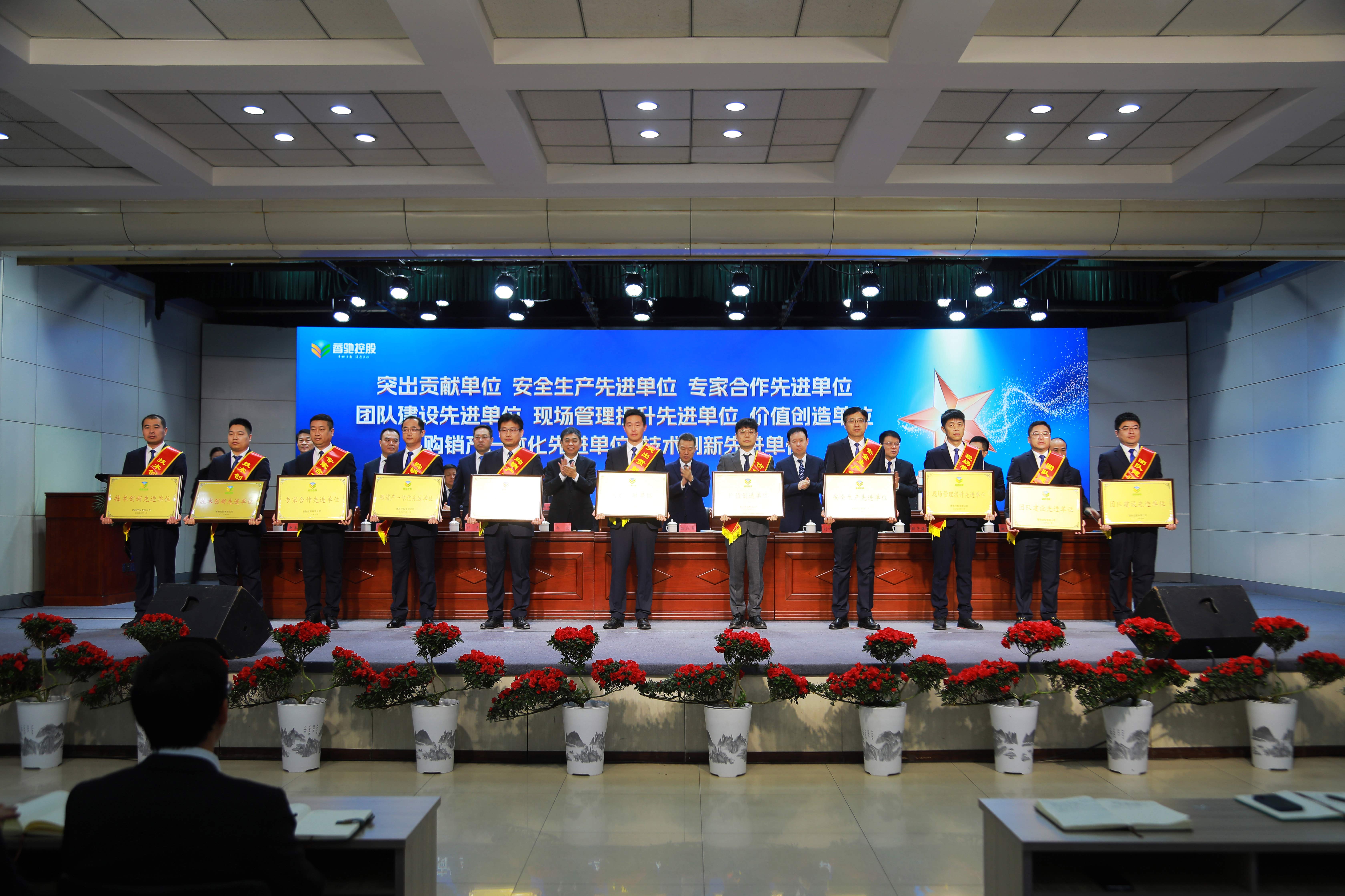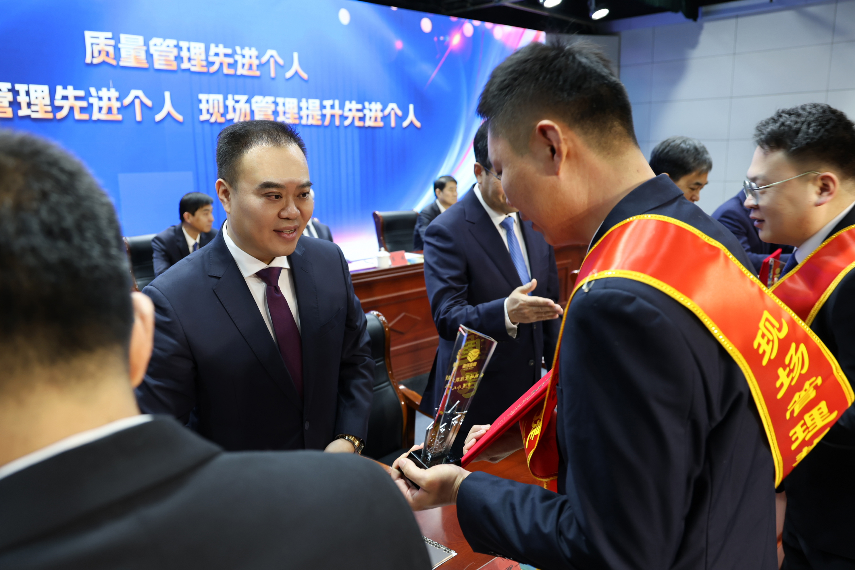 县与会领导、在主席台就坐的高层管理者共同为获奖个人、集体颁发了奖牌证书。