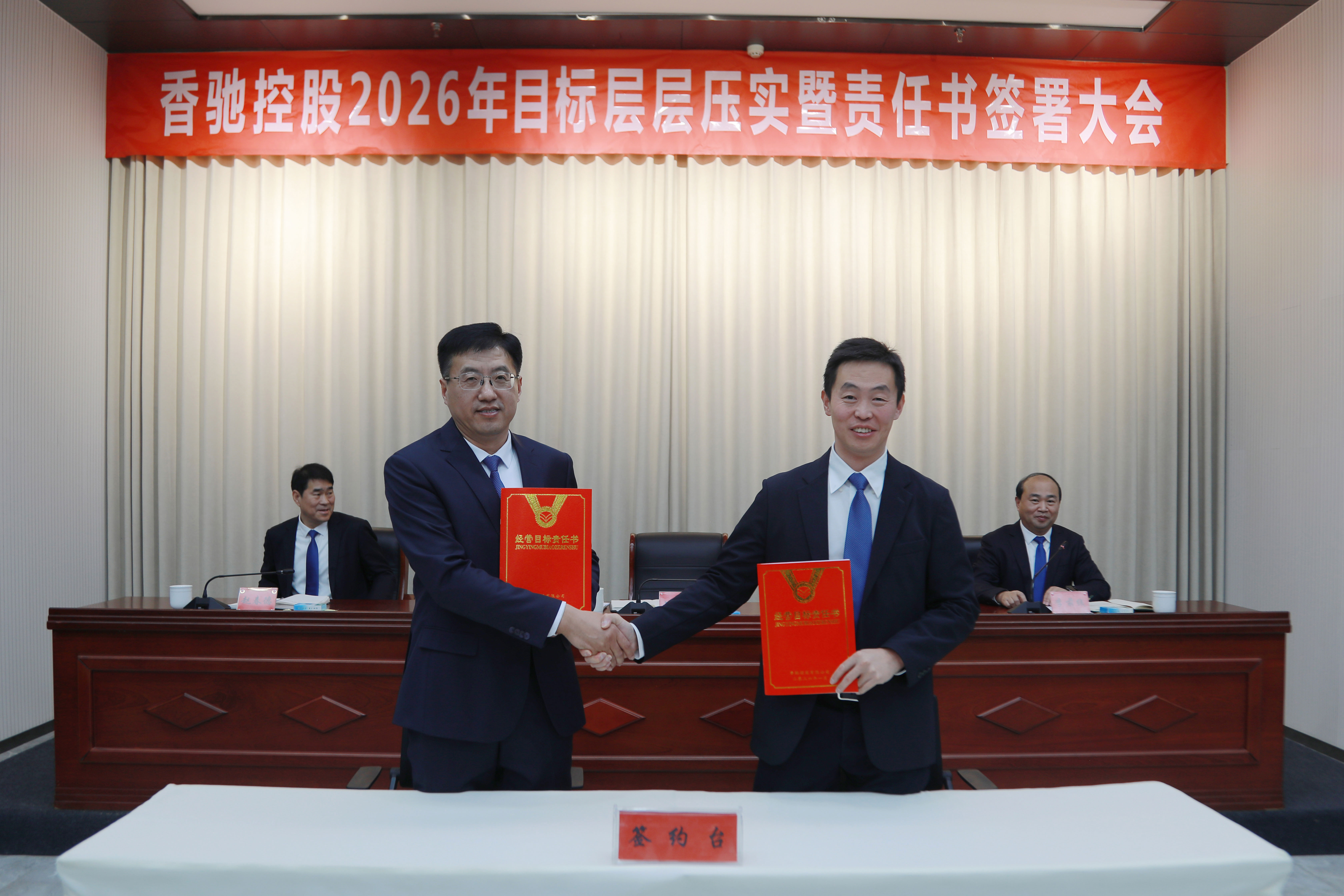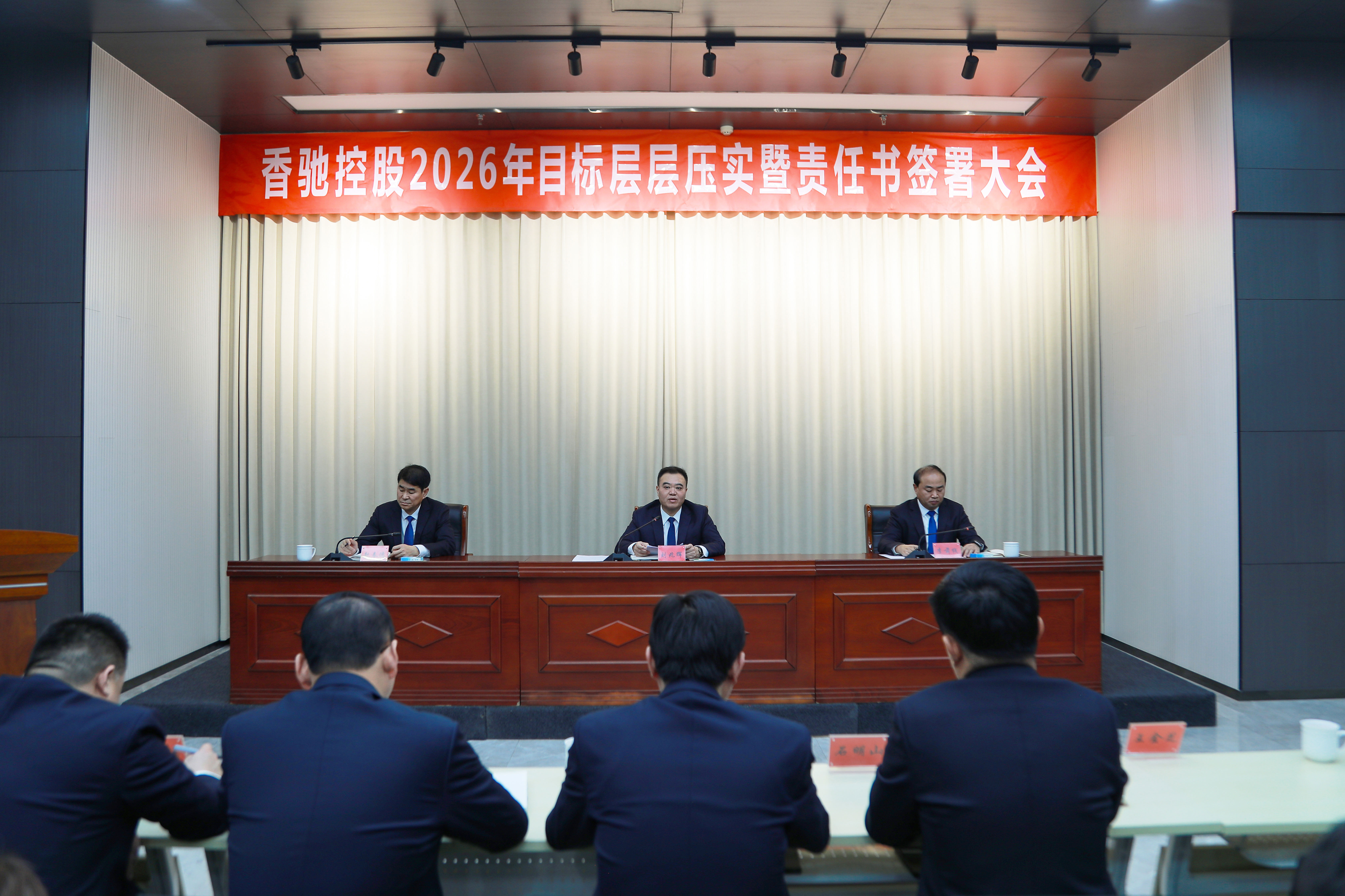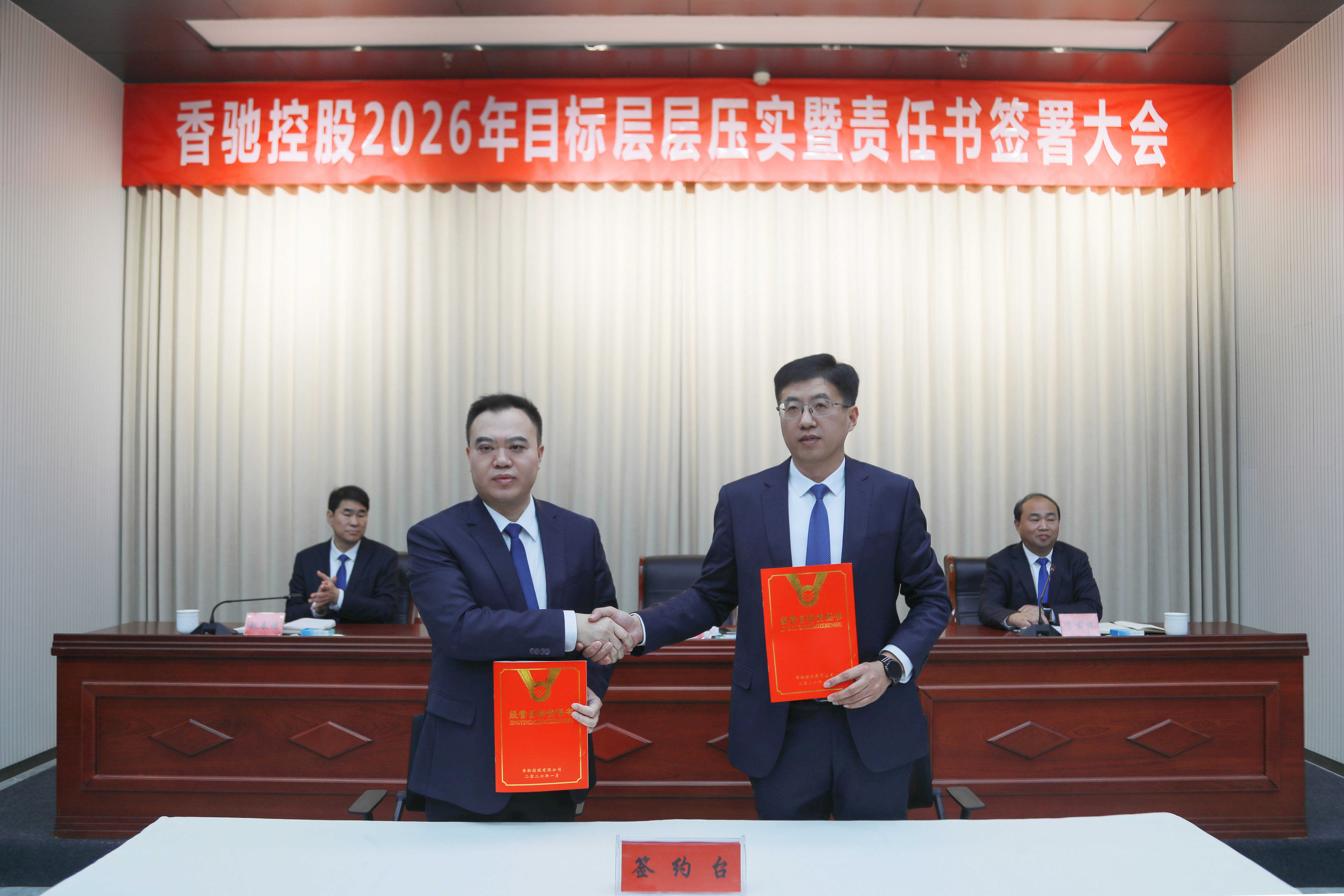 1月23日,香驰控股2026年目标层层压实暨责任书签署大会在科创中心顺利举行。公司董事长、总裁刘兆辉,中高层管理者及部分基层管理者代表参加会议。常务副总裁李前线主持会议。